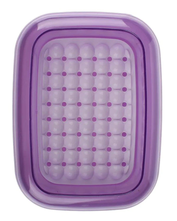 Made from high quality crystal material. Soap dish is super stylish and has been made inluxurious design. Keeps soap high & dry. Raises soap off of counters, sinks, showers, and tubs. This 3 layered soap dish includes 2 drainage trays that collectdrained water in order to let your soap dry quickly and last as long as possible. The upper drainage tray has bubble like structure as well holes. The bubble like structure keeps the soaps lifted while holes allow smoth flow of air that again keep the soap super dry and makes it long lasting! Easy to clean. Colors May Vary.